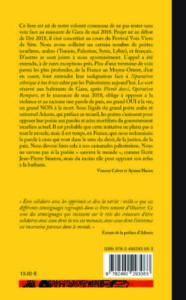 Ce livre est né de notre volonté commune de ne pas rester sans voix face au massacre de Gaza de mai 2018. Projet né au début de l’été 2018, il s’est concrétisé au cours du Festival Voix Vives de Sète. Nous avons sollicité un certain nombre de poètes israéliens, arabes (Tunisie, Palestine, Syrie, Lybie), et français. D’autres se sont joints à nous spontanément. L’appel a été entendu, à de rares exceptions près. Plus d’une trentaine de voix parmi les plus profondes, de la France au Moyen-Orient, d’est en ouest, font entendre leur indignation face à l’épuration ethnique à bas bruit subie par les Palestiniens aujourd’hui. Le sort réservé aux habitants de Gaza, après Plomb durci, Opération Rempart, et le massacre de mai 2018, oblige à opposer à la violence et au racisme une parole de paix, un grand OUI à la vie, un grand NON à la mort.